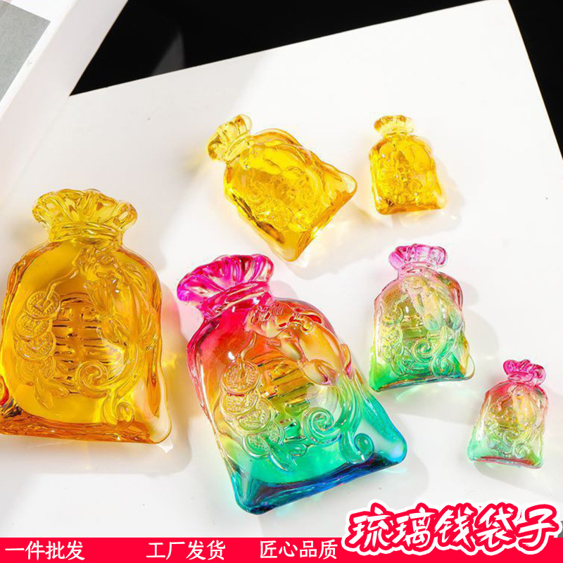 ガラスの福袋、お金の袋の装飾品、平和の意味、富と幸運を呼び込む、縁起の良い贈り物、家の装飾、シトリンのお金の袋