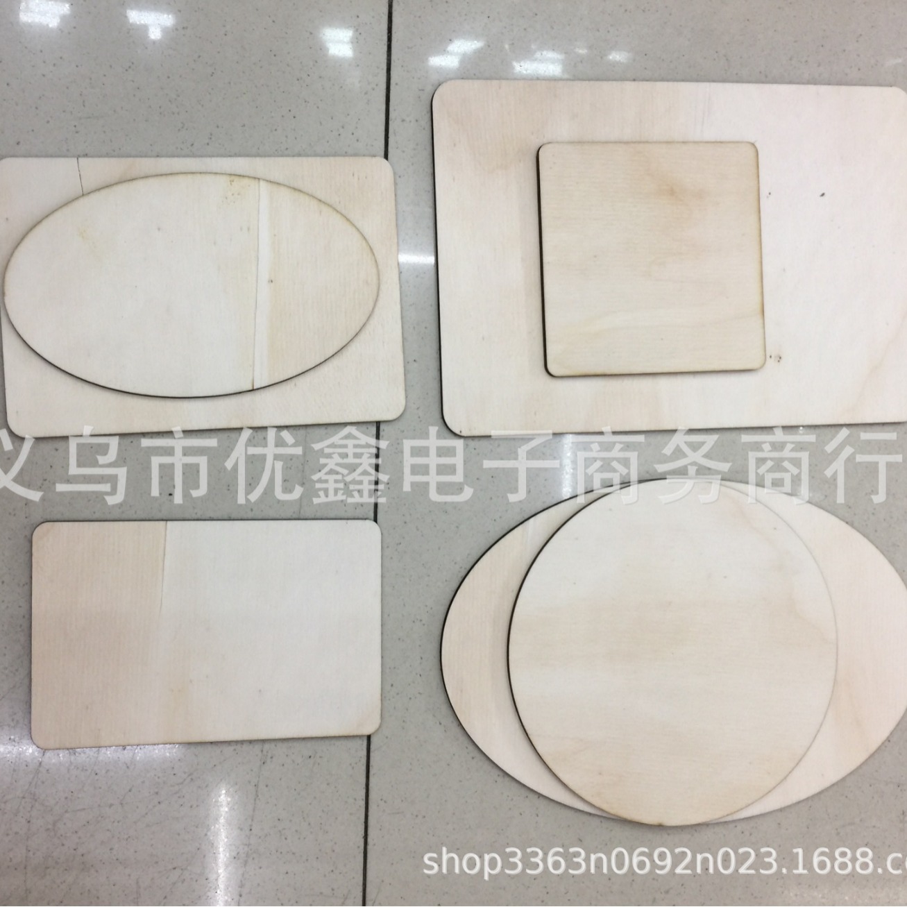 Diyレーザー切断木片木質幾何学木片楕円角型円形等板
