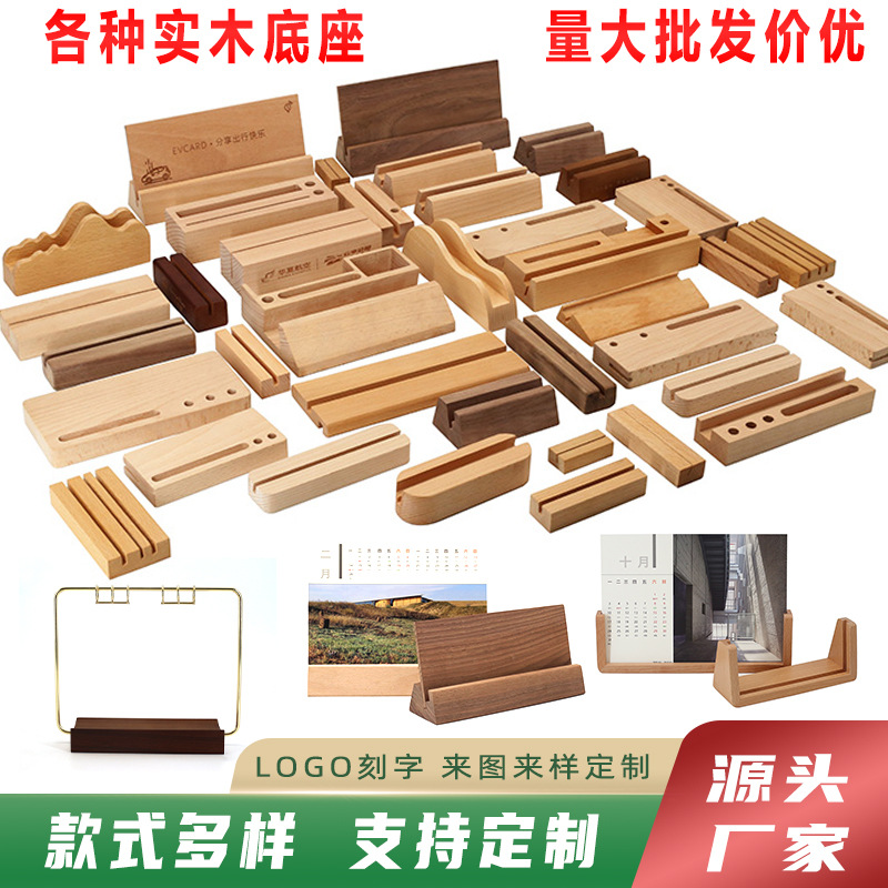 多規格木製卓上カレンダー台座デスクトップはがき名刺実木台座卸売り便箋台座はロゴを印刷できる
