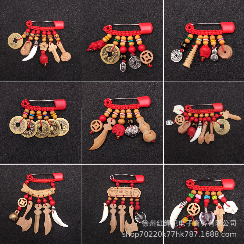 ✅ ベビーピーチウッドピンペンダント犬の歯赤いロープ編組ピン卸売ペンダント旅行ポータブルピーチウッドソード