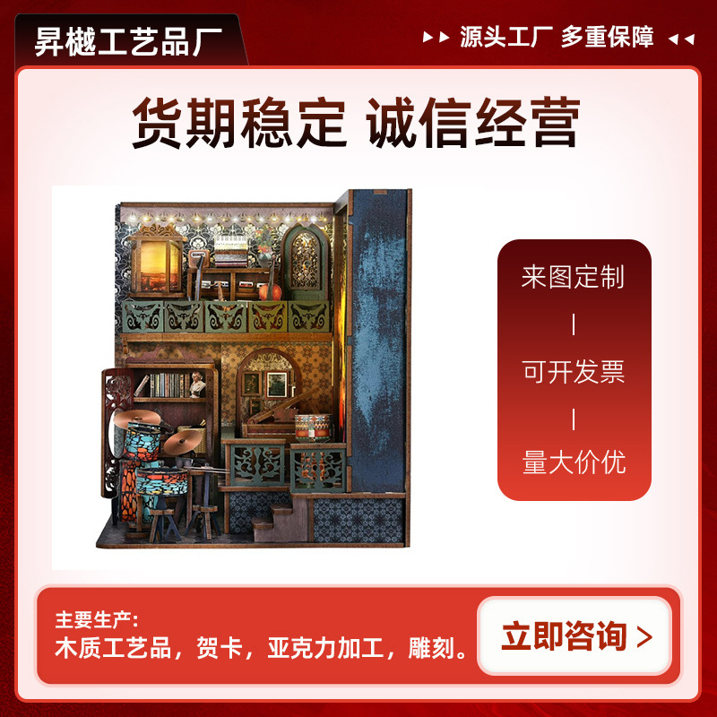 新作書立音楽の声照明画diy小屋模型玩具芸術プレゼント置物積み木手作り