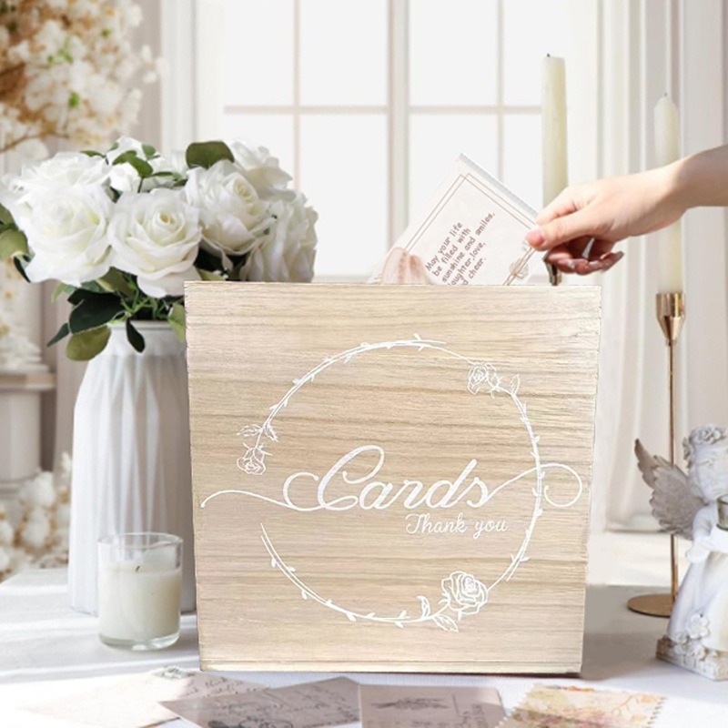 木製デスクトップ正方形ギフトボックス結婚式グリーティングカード収納ボックスオフィス封筒メール収納ボックスギフトボックス
