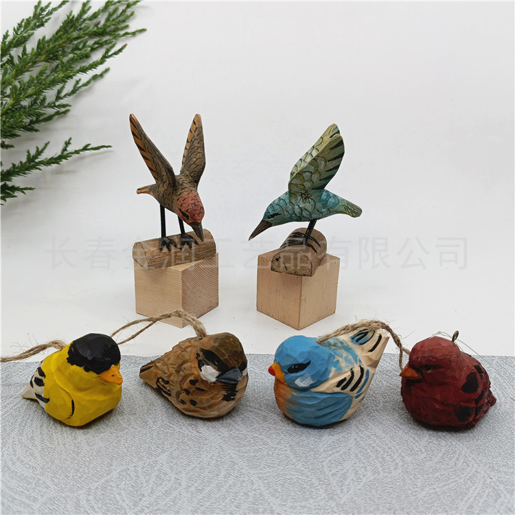 無垢材手彫り鳥ペンダント木彫り鳥装飾品かわいいクリップ鳥メーカー卸売新年ギフト