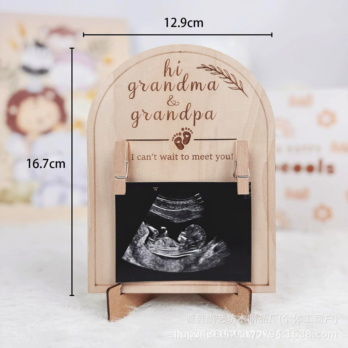 クロスボーダー卸売木製超音波フォトフレーム赤ちゃん公告記念スタンド妊娠公告祖母プレゼント付印泥