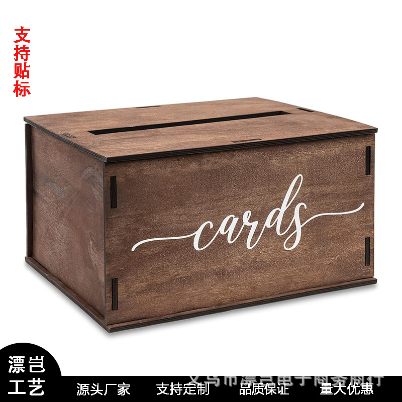 国境を越えた木製結婚式のカードケースレトロ装飾パーティーカードケーススロット付きクリエイティブ収納ケース