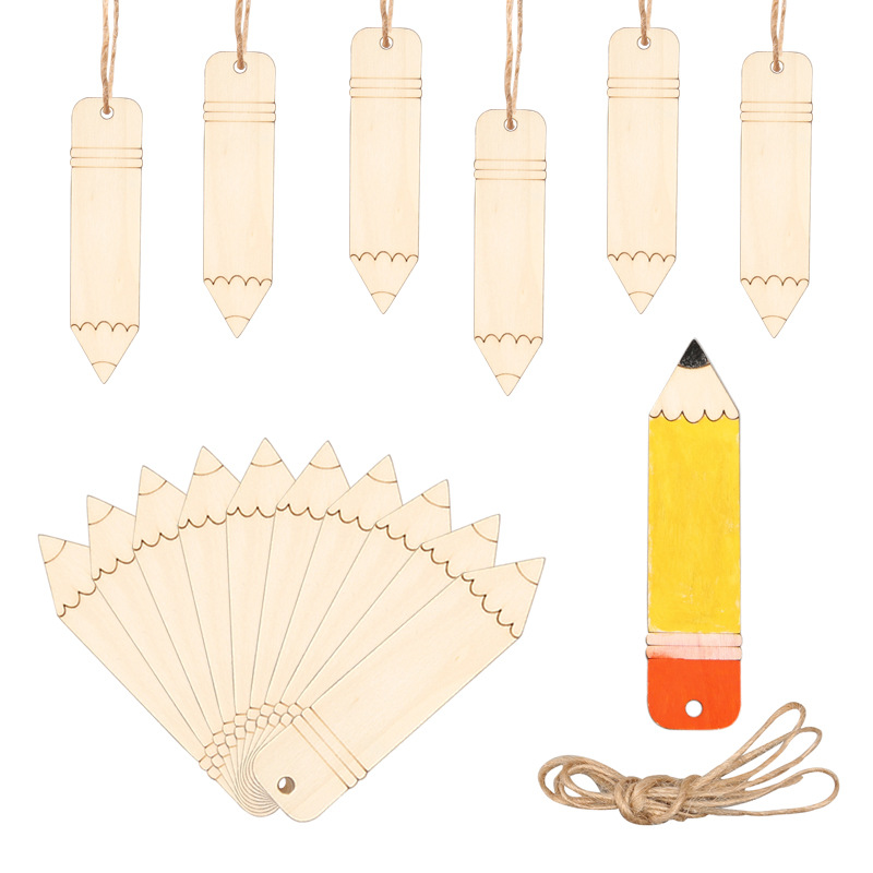 クロスボーダー新型木質空白鉛筆型ブックマークdiy未完成透かし彫り麻縄ラベル看板ブックマーク