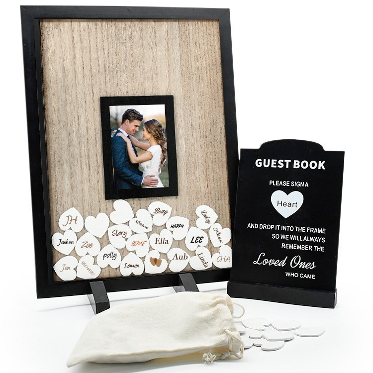 卸売クロスボーダーアクリル結婚式お祝いフォトフレーム無垢材愛のゲストブック北欧木彫り装飾装飾品