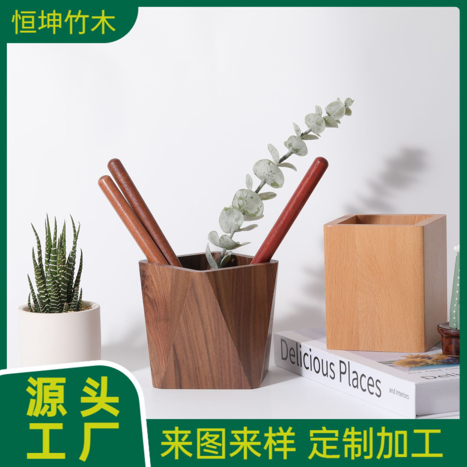木製筆筒創意実木収納ケース日系シンプル置物多機能実用レトロ芸術化粧ケース