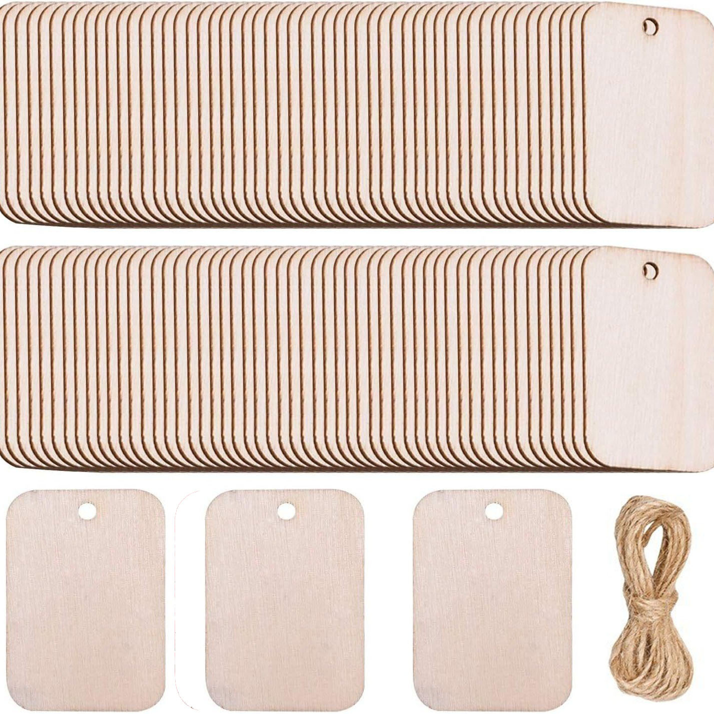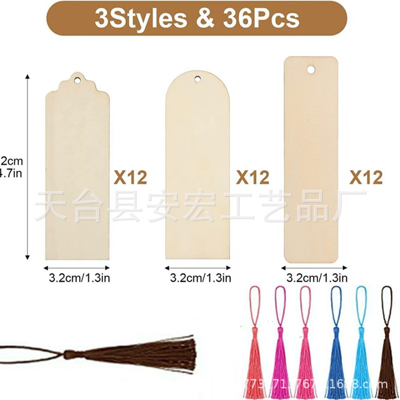 72個の木製空白長方形タッセルブックマーク DIY木製未完成長方形ラベルブックタグ木製ペンダント