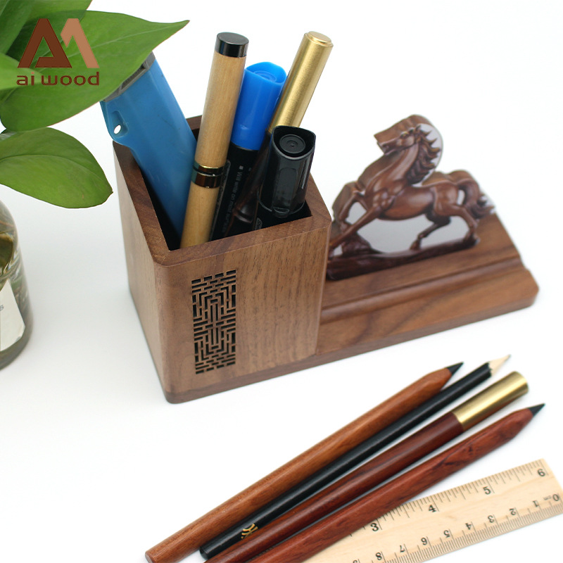 木製筆筒オフィスデスクトップ収納ボックスレーザーオーダーメードlogo馬は実木工芸品に成功しました。
