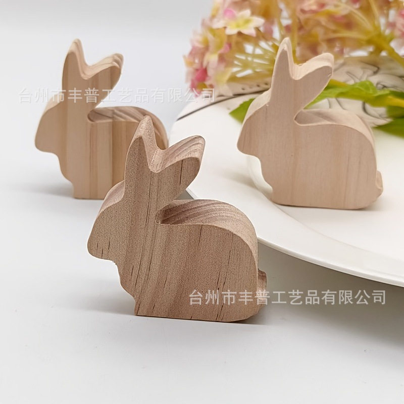 原木の色の彫刻の木のウサギの置物の幼稚園の絵画の試合のきれいな顔の動物のイースターの装飾品