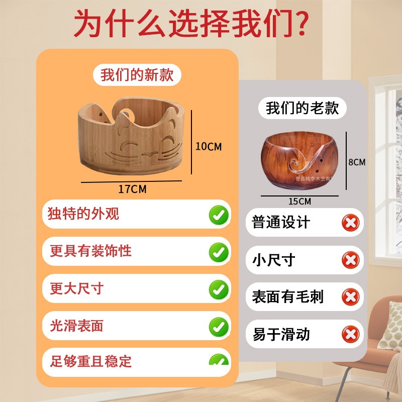 漫画の木製の毛糸の碗の毛糸は木の碗の手作りの紡織の木製の丸い毛糸の碗を収納します。