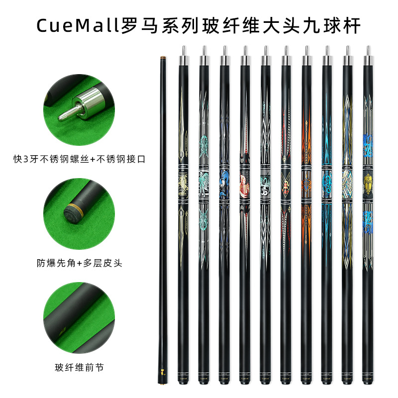 Cuemallビリヤードヘッド13mmアメリカ九球棒黒科学技術クラブガラス繊維台クラブローマ
