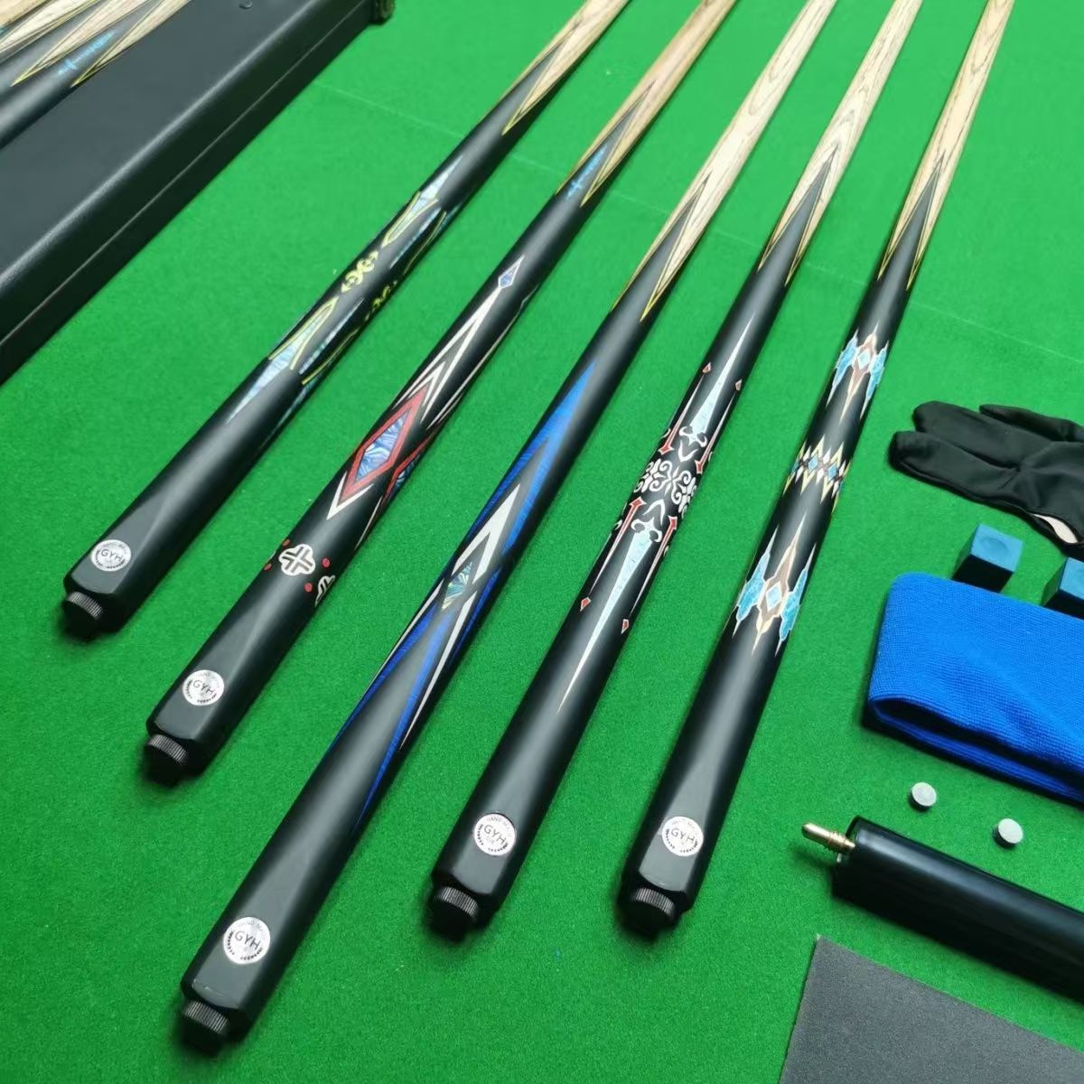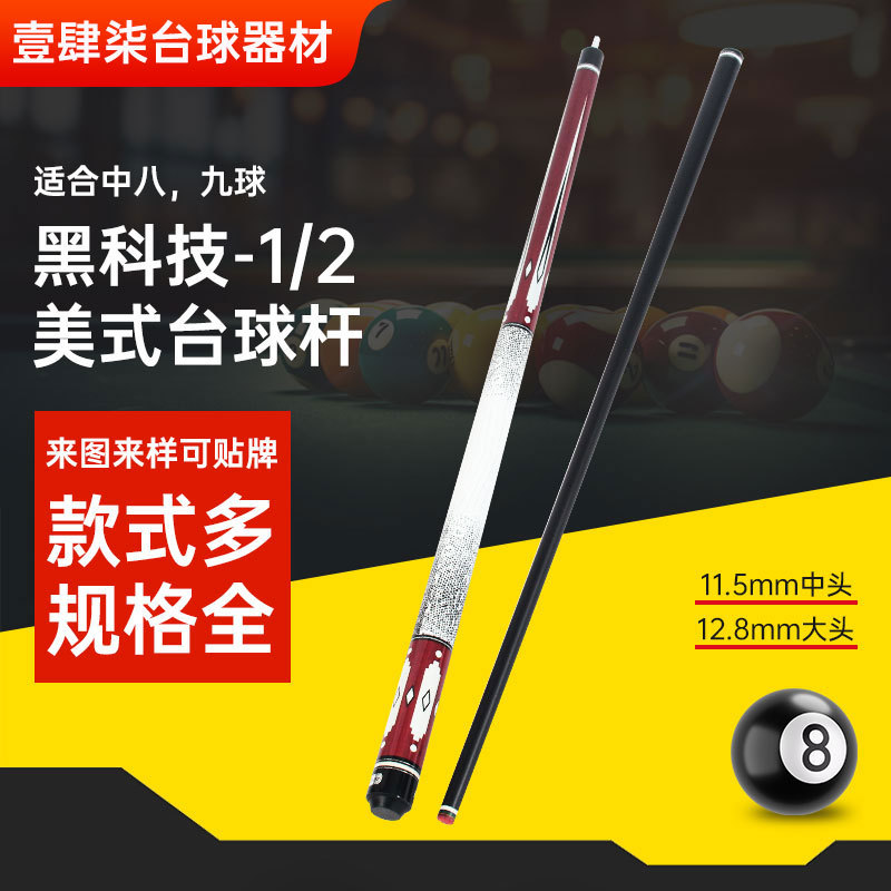 アメリカンスタイルのナインボールビリヤードキュー、中国風ブラックエイトボールキュー、1/2分割ブラックテクノロジーカーボン、卸売カーボン素材