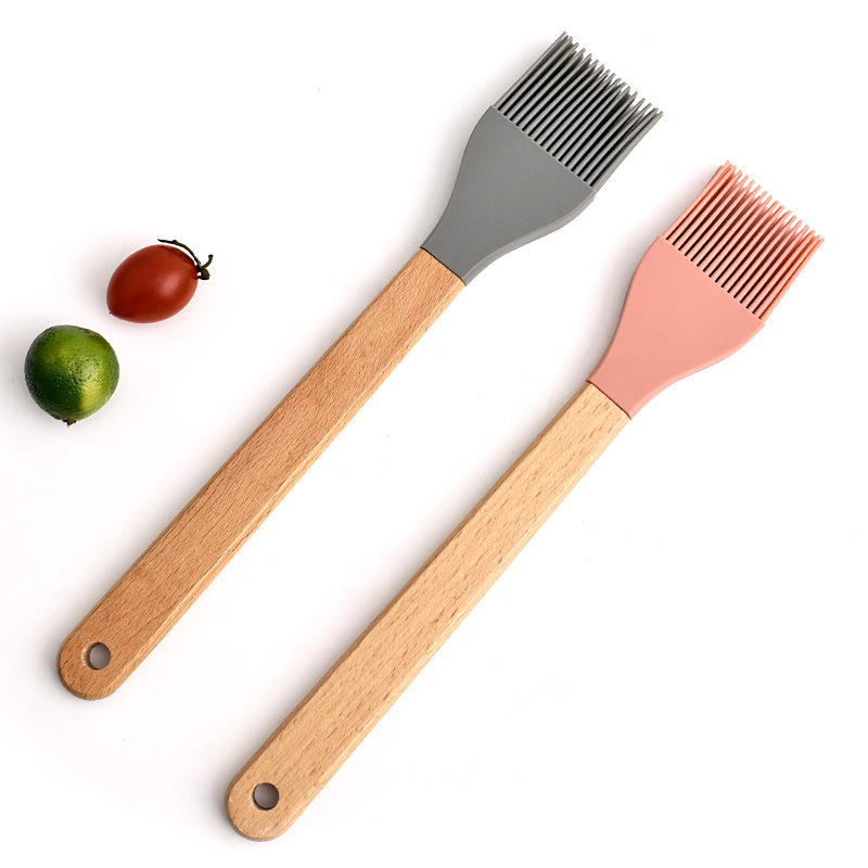 木の柄のシリカゲルのオイルブラシのバーベキューブラシの耐高低温シリカゲルのクリーニングのオイルブラシの卸売り