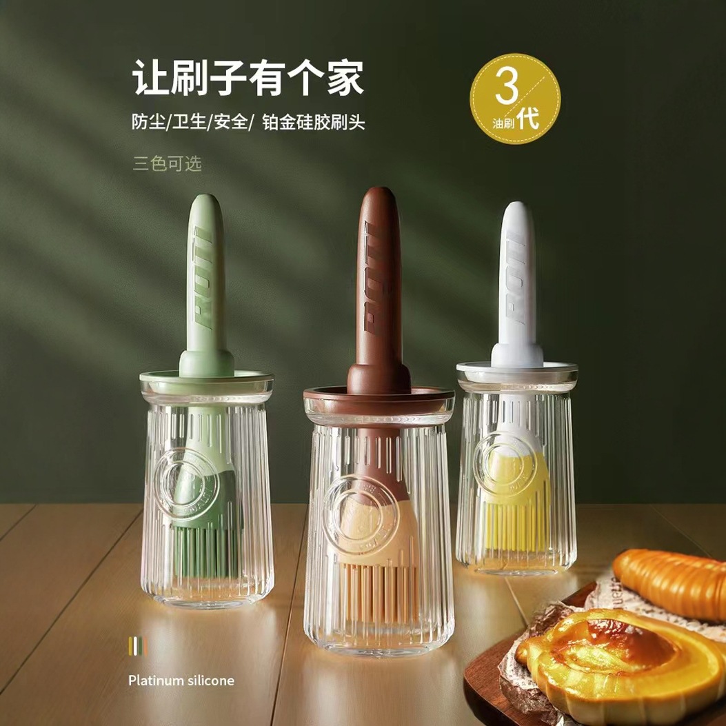 日本式百貨創意一体式バーベキューブラシ家庭用食品級焙煎密封調味料ブラシ蓋付きオイルブラシ