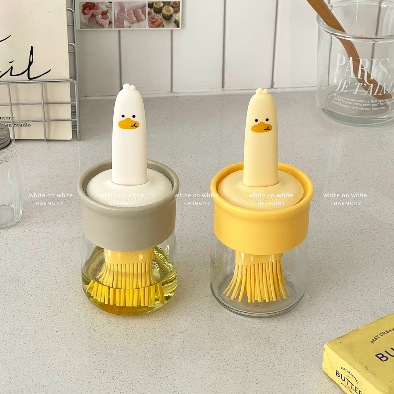 シリコンオイルブラシ一体型ブラシ ガラス瓶一体型オイル付き キャンプ必需品 ポータブルオーブン用シリコンブラシ 小さな黄色いアヒル