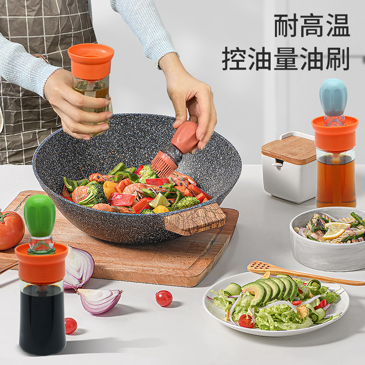 家庭用オイルブラシキッチン烙餅焼き焼きガラス食品級耐高温一体シリカゲルオイルブラシ瓶