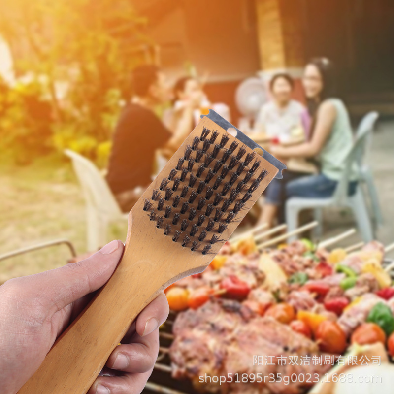 メーカー卸売木製ハンドルワイヤーグリルクリーニングブラシ多機能バーベキューオーブンワイヤーブラシバーベキュー用品