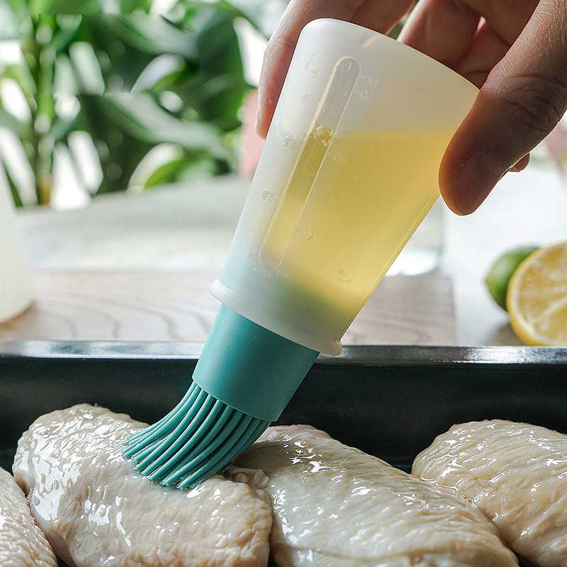 オイルブラシ家庭用高温耐性シリコーンオイルブラシボトル付きキッチンパンケーキ食品グレードバーベキューベーキングオールインワンオイルブラシボトル