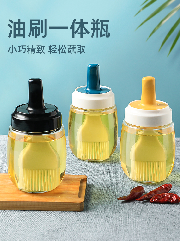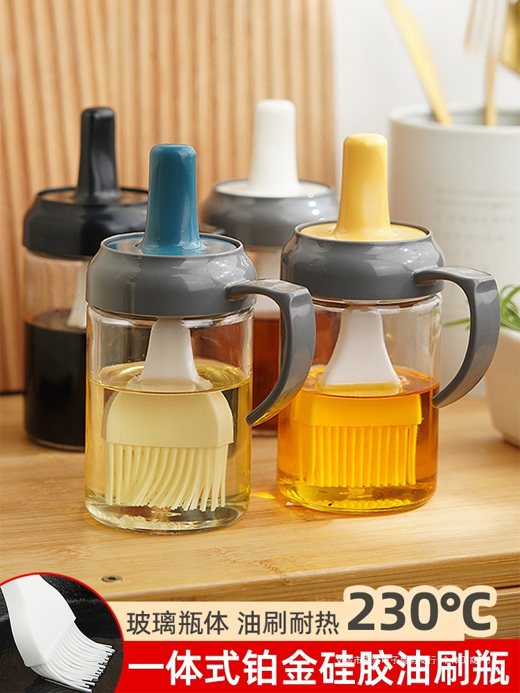 オイルブラシオイルボトル一体型ガラス家庭用高温耐性キッチンパンケーキシリコンブラシ食品グレードベーキングバーベキューブラシ