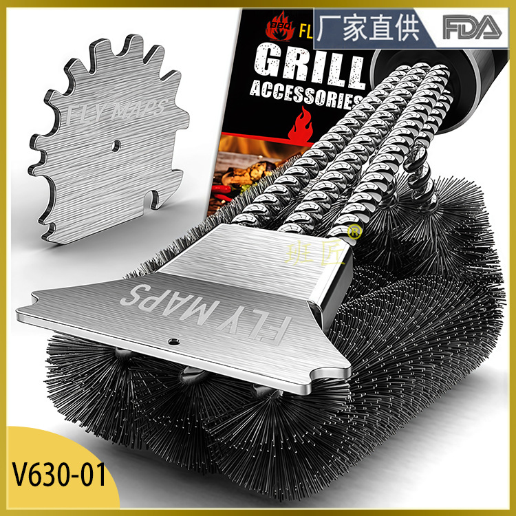 アマゾンの人気三頭帯スクレーパーステンレスバーベキューワイヤーブラシクリーニングブラシBBQバーベキューツール