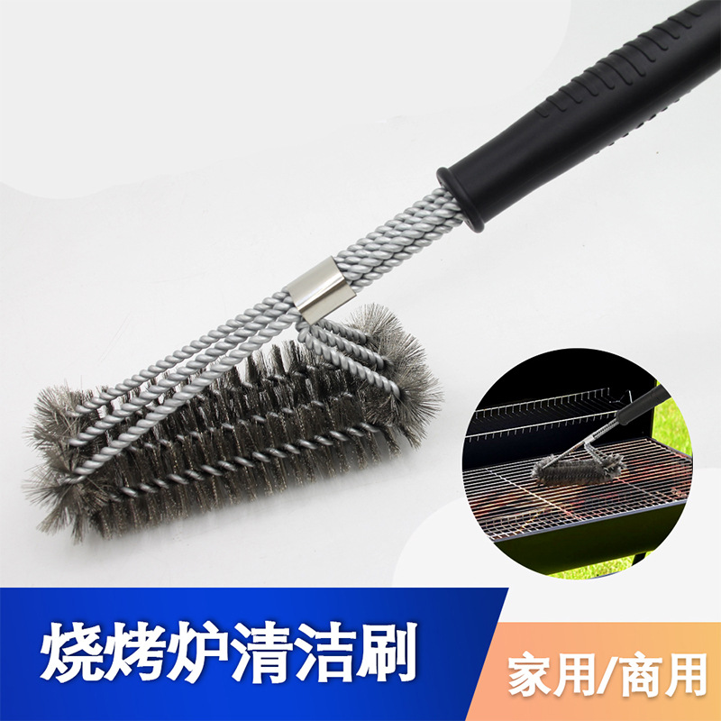 永民工場直供15インチ三頭ステンレス鋼線バーベキュー洗浄ブラシ断熱滑り止め新ハンドル