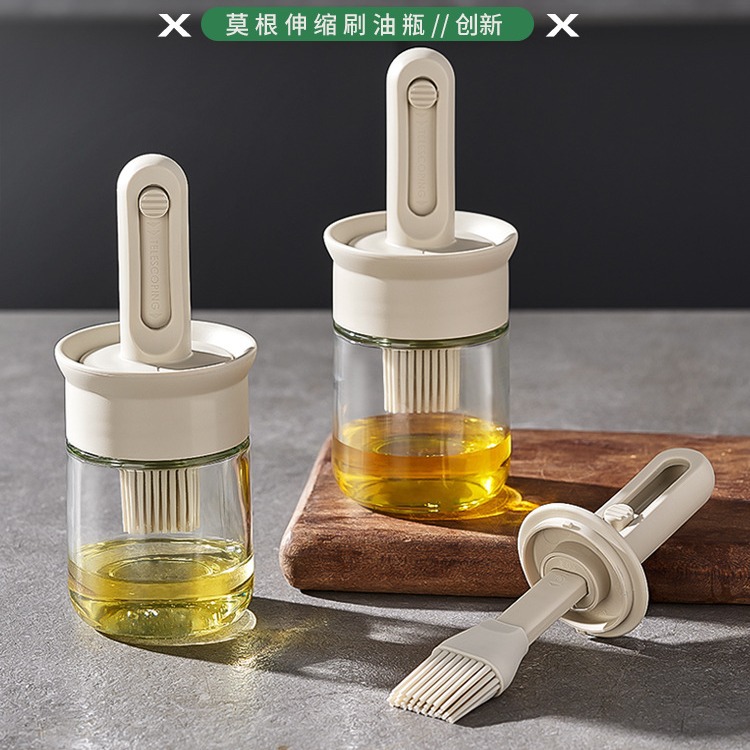 一体ガラス瓶オイルブラシ油瓶家庭用シリコンブラシ焼き餅食品級ブラシ調整節油ブラシ