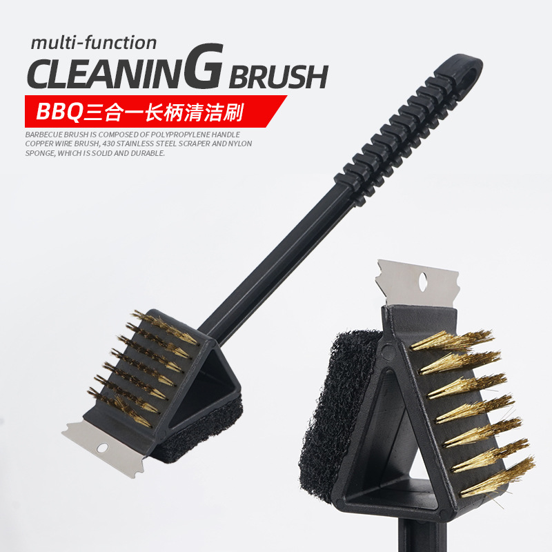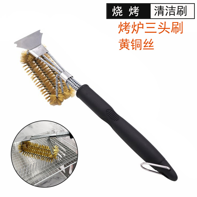 メーカー卸売 三頭ステンレス製バーベキューブラシ グリルオーブン バーベキュー掃除ブラシ スチールブラシ BBQバーベキュー道具
