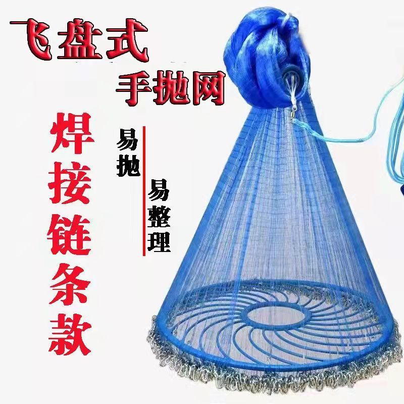 新型太く4番線の飛盤式の撒網の手投げ網の円盤の魚網は鉄の鎖を強めて太い線を引いて漁網を撒きます。