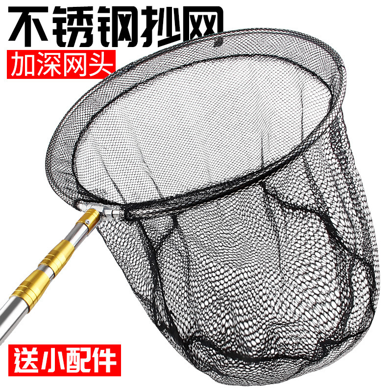ステンレス製の釣りネットポール、伸縮式フルセットヘッド、折りたたみ式の深めのネットバッグ