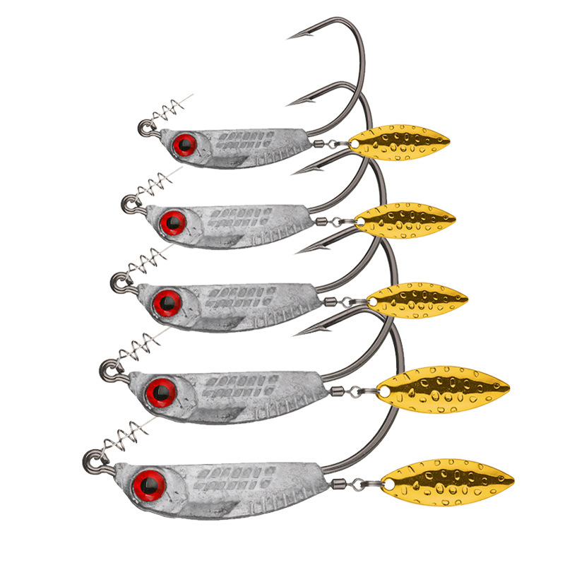 威と魚型鉛付きクランクフック3g 5g 7g 10g 14gロック針付きスパンコール防掛底鉛フック卸売り
