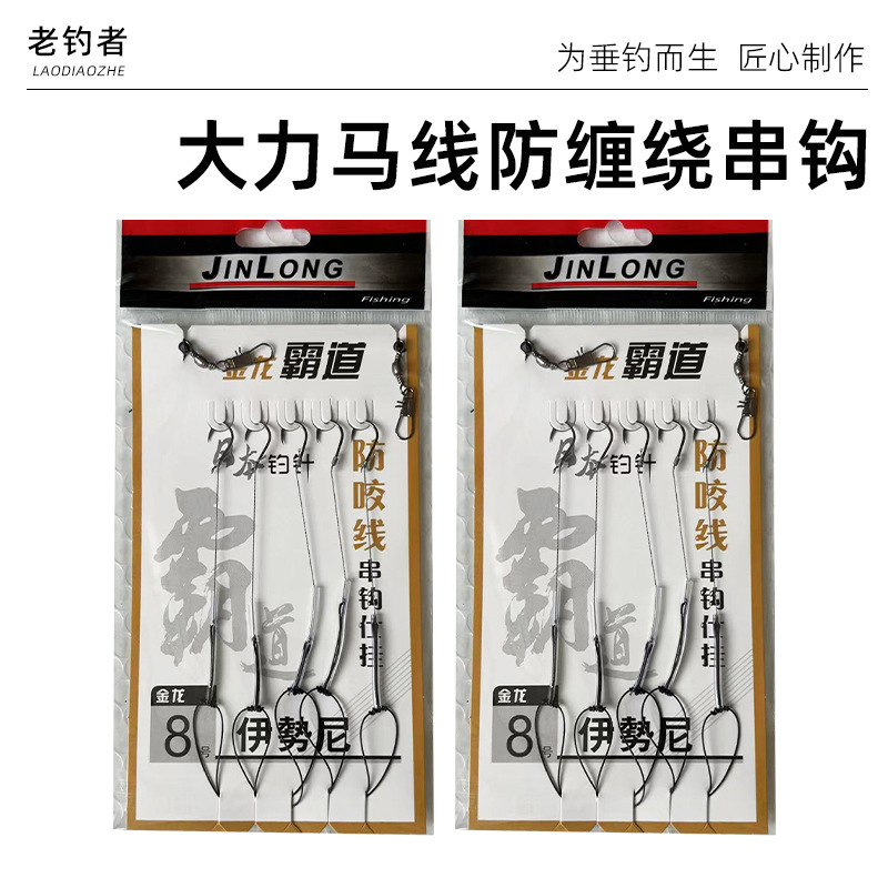 金海夕双針釣り針専用ロングライン、黒坑野釣り用、鯛釣り針、本物の仕立て済みセット