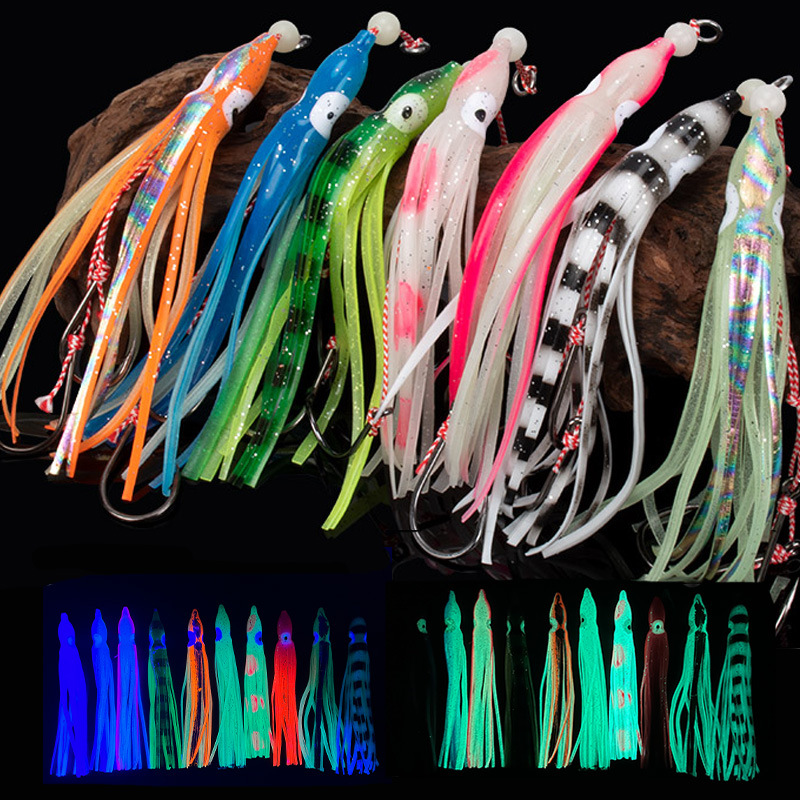 バイオニックフックボート釣りフックゴムフックメーカー供給魚皮ストリングフックバイオニックストリングフックボール発光魚皮釣りフック