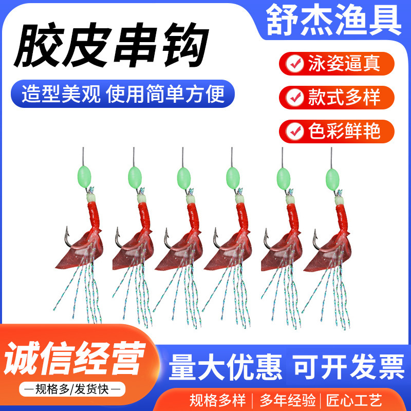 金丸石バイオニックカラーレザーストリングフック、ゴムフック、ゴムフック、白ストリップコック口、魚皮フック、エビ皮ストリングフック