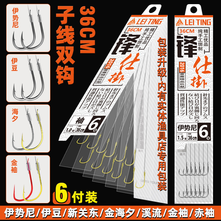 6副子線ダブルフック伊勢尼伊豆新関東海夕渓流金袖赤袖有刺フック卸