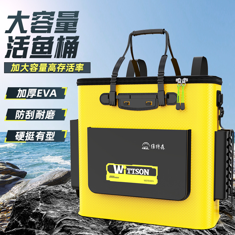屋外釣り用ポータブル折りたたみ活魚桶、厚型魚保護桶、一体成型収納釣り道具バッグ