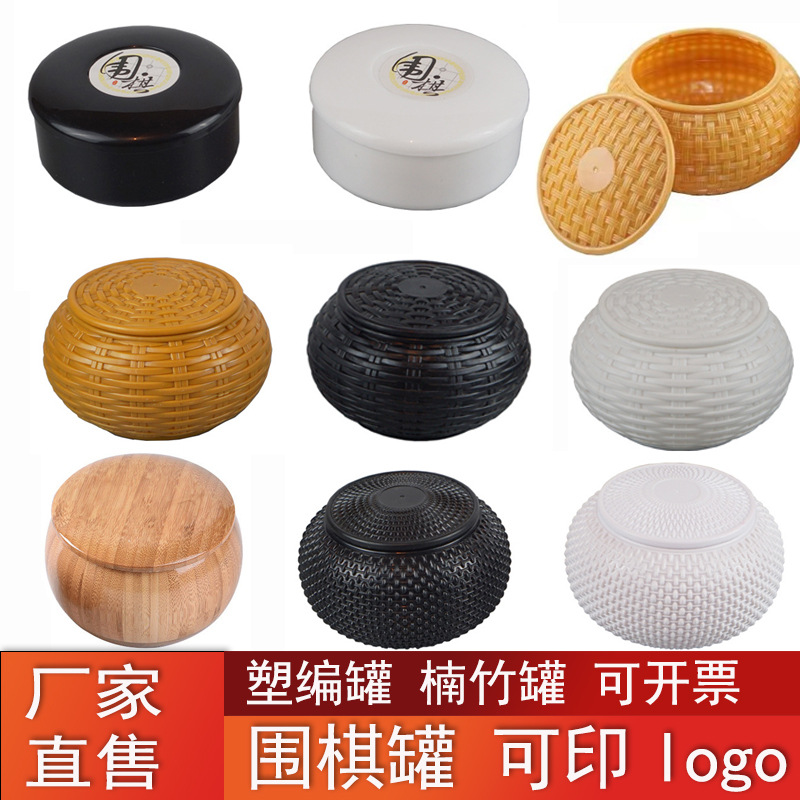 囲碁のチェスの箱の楠竹のチェスの缶の白黒のプラスチックは木の草の編みの樹脂の五子の将棋をまねて空の箱を収納します。