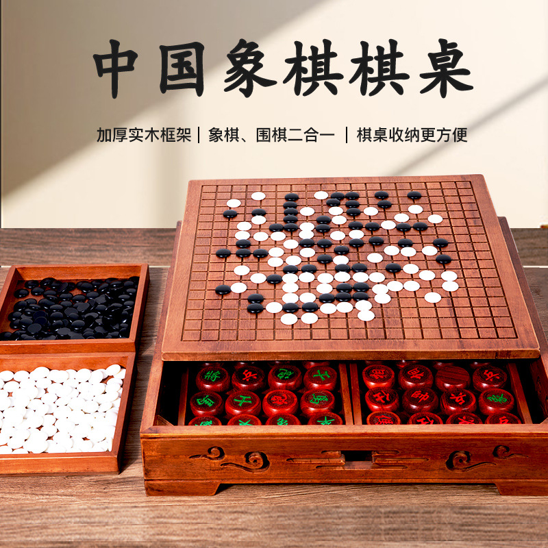 高級実木二合一盤棋脚紅木中国将棋囲碁五子棋雲子児童成人プレゼント