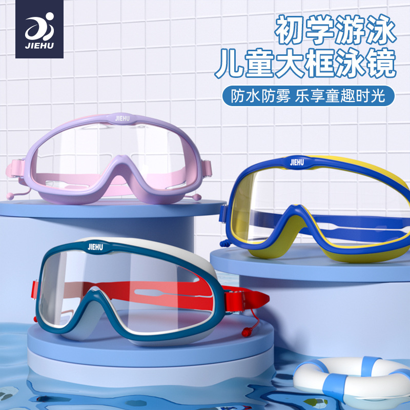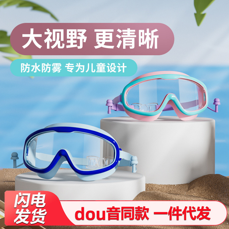 子供用大枠高精細防水防霧潜水高精細水泳メガネ連体耳栓シリカゲル子供用水泳鏡