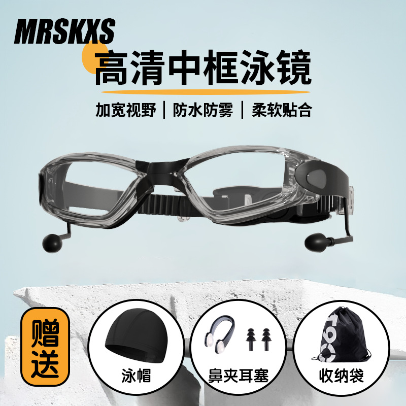 佑水泳鏡女性防水防霧近視モデル大枠水泳眼鏡潜水男性専門水泳帽水泳鏡セット