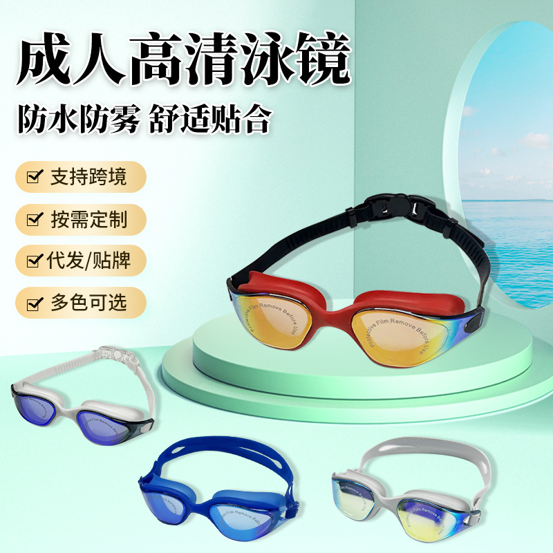 クロスボーダー卸売専門ハイビジョン電気メッキ競速水泳鏡防水防霧環境保護シリカゲル水泳メガネ男女通用