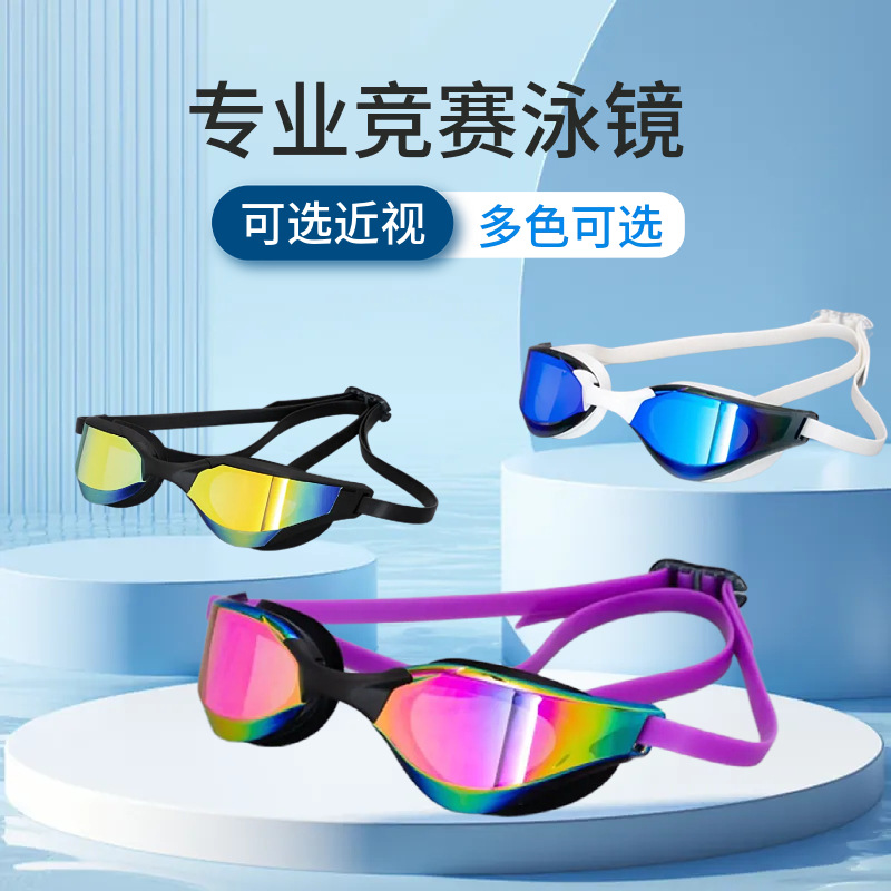 クロスボーダーハイビジョン水泳鏡男女型防霧シリカゲル近視メガネ防水水泳装備電気めっき水泳鏡卸売り