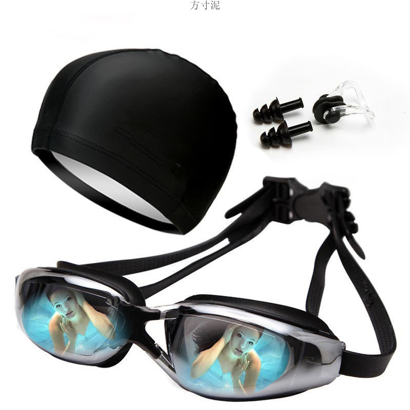 貴人鳥水泳鏡ハイビジョン防水防霧男女近視水泳電気めっきメガネ専門潜水鏡水泳帽子セット
