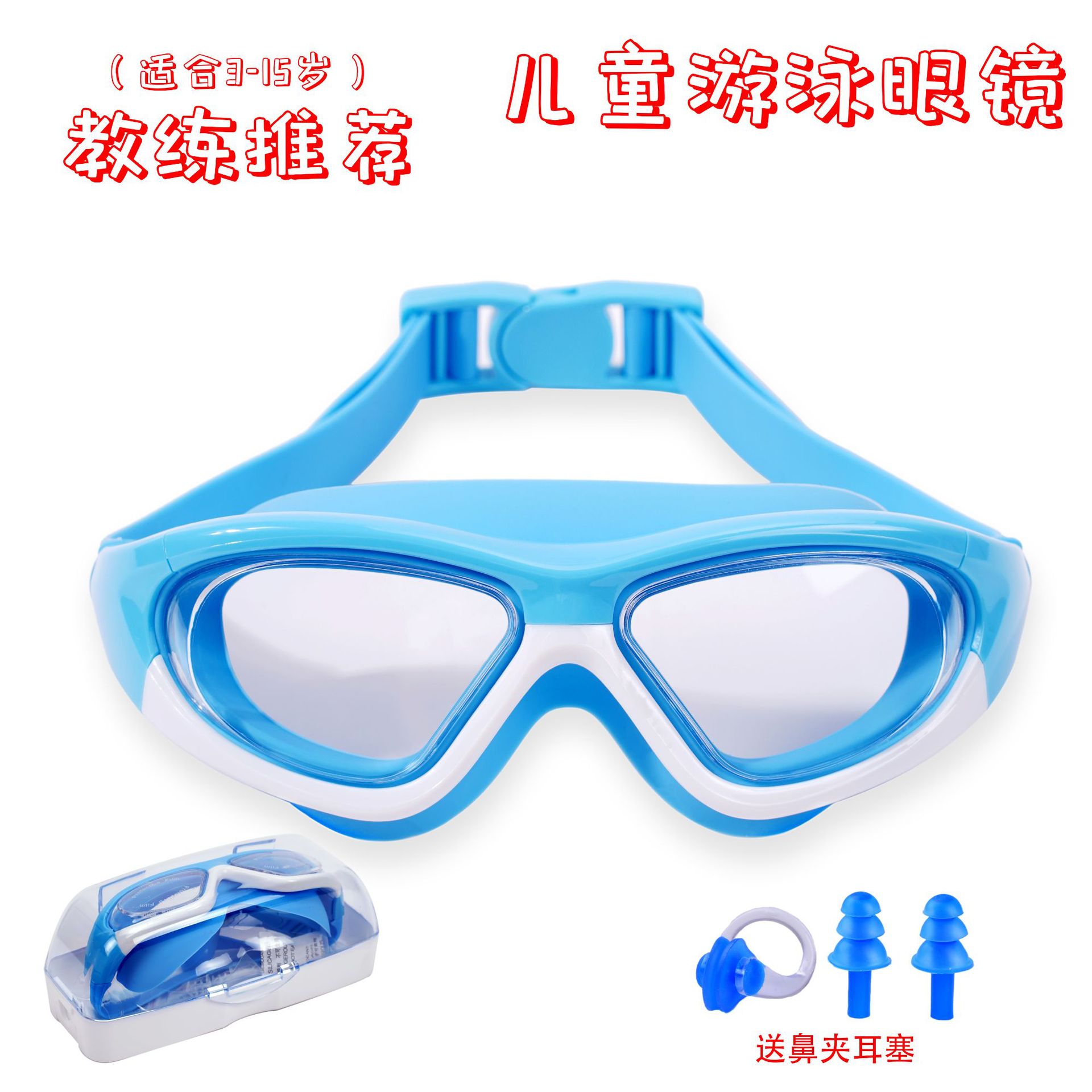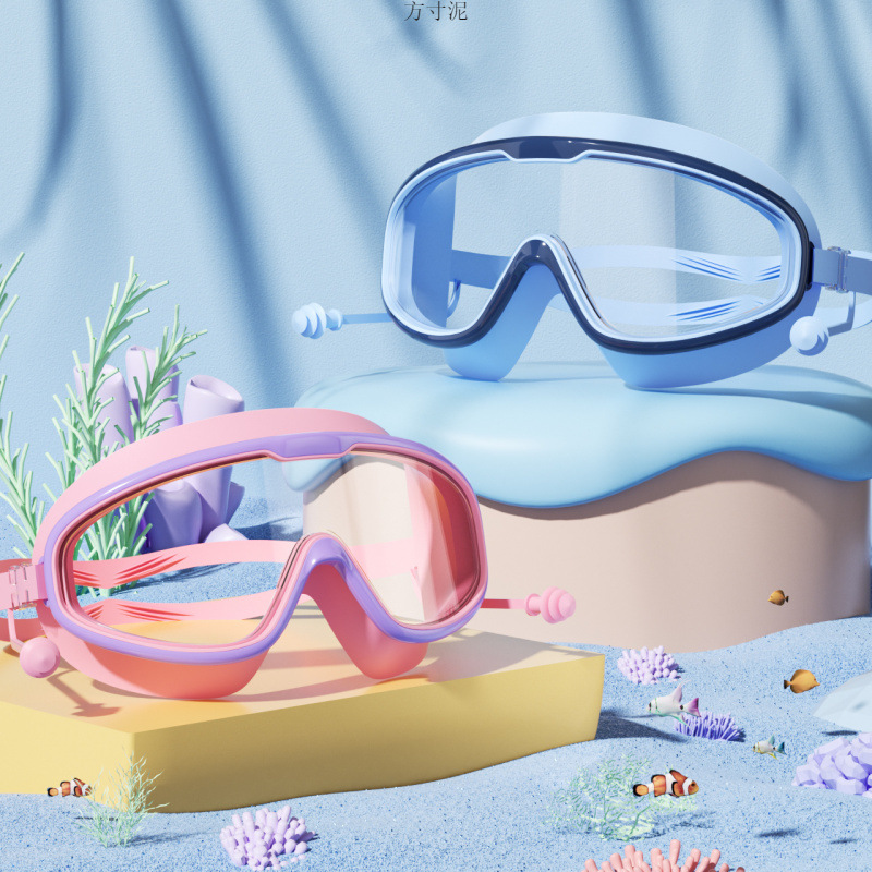 クロスボーダー高精細大枠子供用水泳鏡防霧水泳メガネゴーグル快適シリカゲル連体耳栓袋