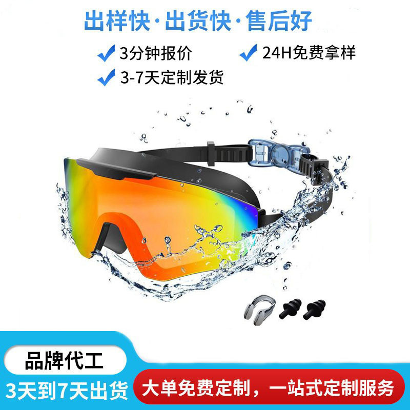 2025 新しい大人の電気メッキ水泳ゴーグル大型フレーム一体型耳栓一体型防水防曇フラット水泳ゴーグル卸売