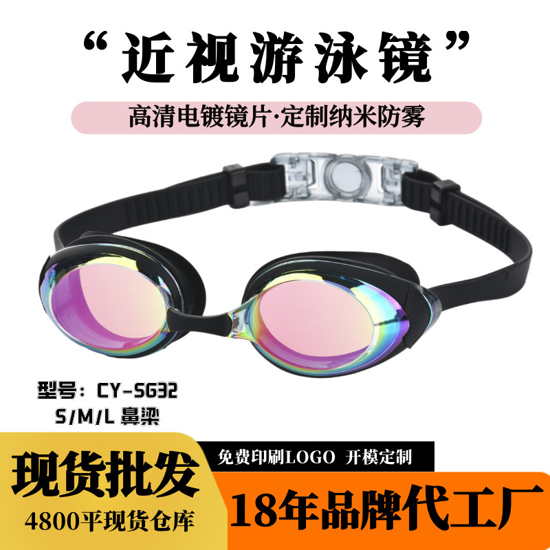 メーカー直販水泳鏡成人防水防霧男女ハイビジョン大枠近視水泳眼鏡透明潜水保護目