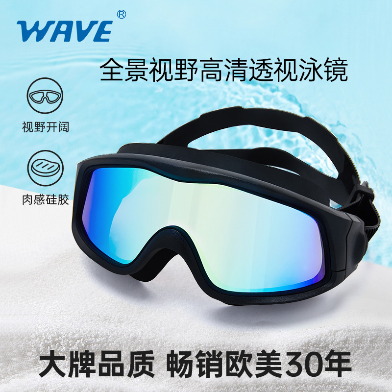 ウェーブ大型ミラー高精細電気メッキスイミングゴーグル 大人男女兼用 防水防曇大型フレームスイミングゴーグル