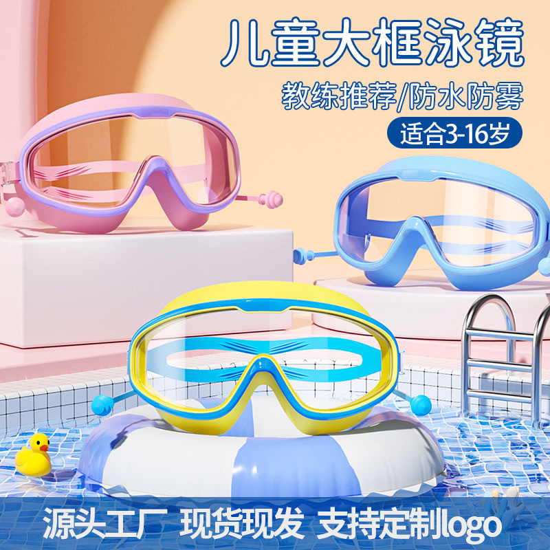 子供用大枠水泳鏡高精細防水防霧ゴーグル連体耳栓男児童水泳鏡現物卸売り