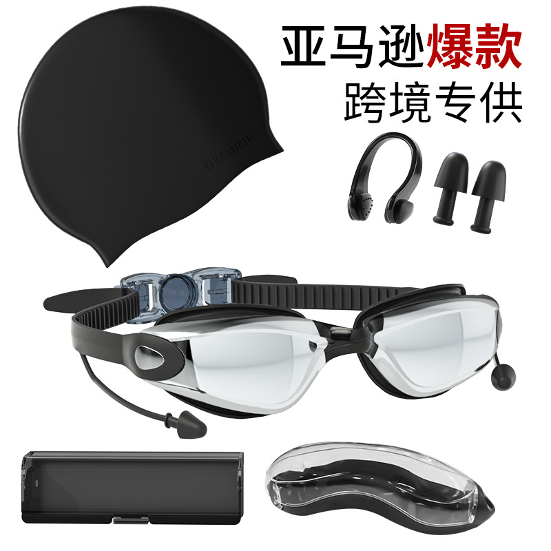 アマゾンの人気水泳鏡水泳帽鼻クリップ耳栓セットシリコン水泳帽クロスボーダー水泳眼鏡ダイビング保護目